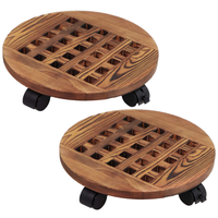Pack Of 2 Heavy Duty Round Traditional Wood Plant Pot Stand On Wheels 40cm